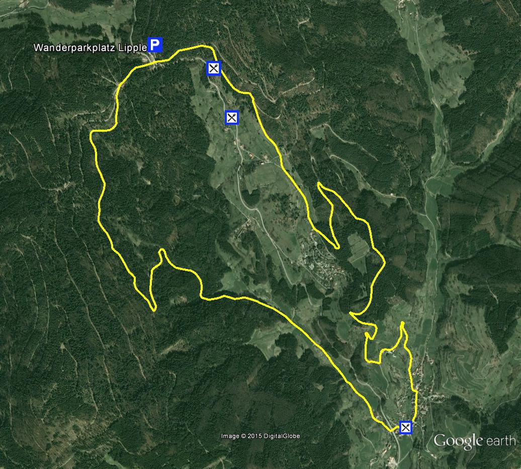 vorbei gelangen wir nach kurzer Zeit wieder auf den Lipple-Parkplatz, unserem Ausgangspunkt.