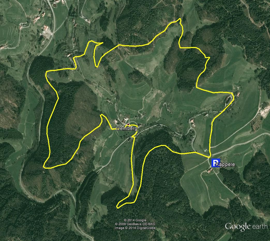 Teerweg bergauf folgen. Schon kann man die große Linde sehen, am Parkplatz Käppele. Rechts unter