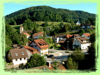 Waldrand liegenden Häusern. Wir folgen dem