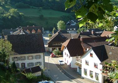 einen schönen Blick über Tegernau und gehen hinunter zur evangelischen Kirche, zu unserem