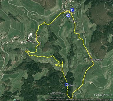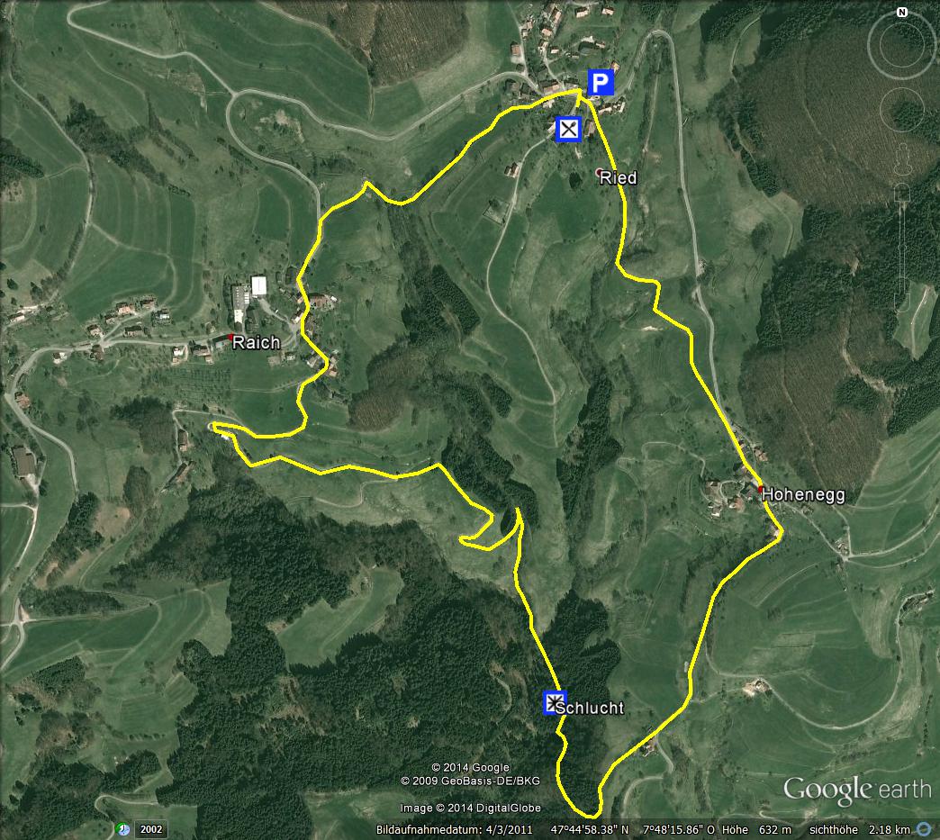 Richtung Schießhalde/Hohenegg/Holl angiebt. Dort biegen wir links ab auf den Feldweg und folgen dem